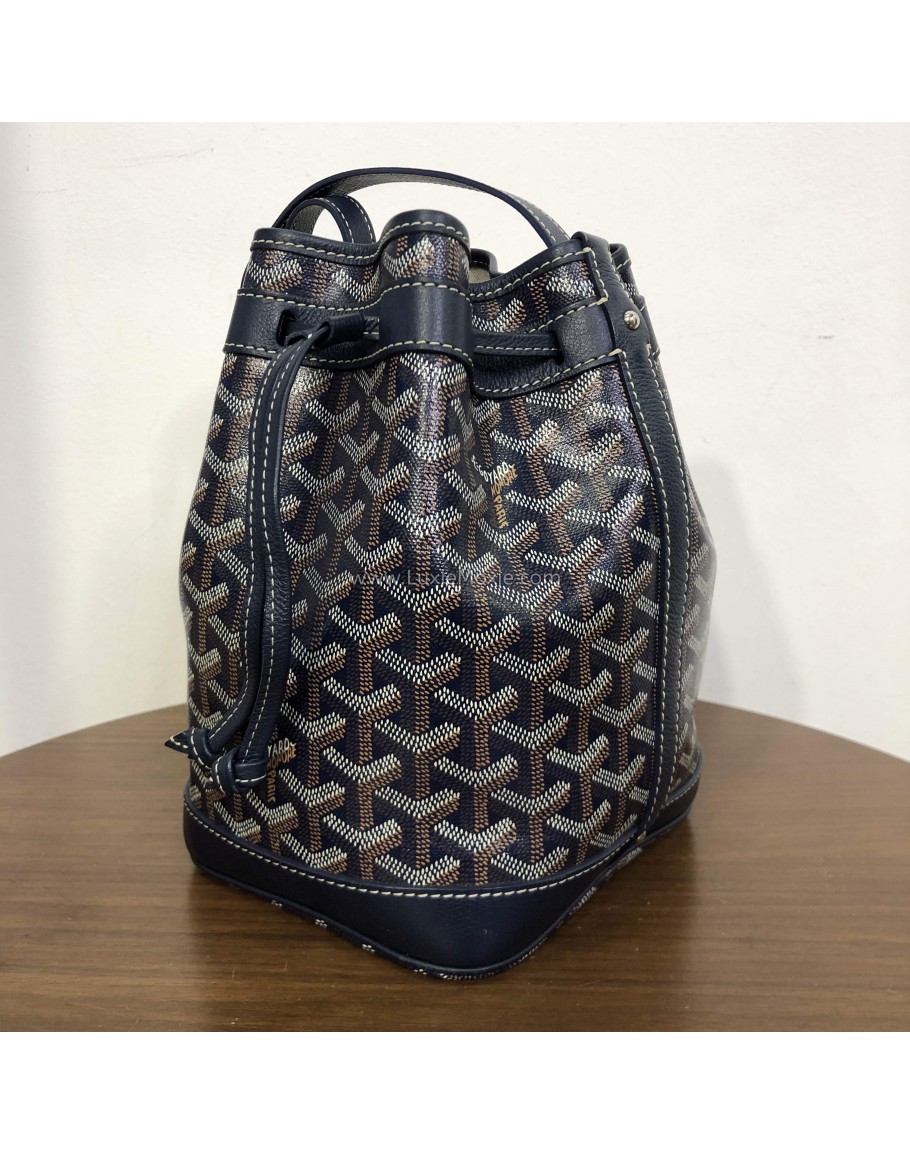 Product Code: GOYARD Petit Flot PM Bucket Bag in Navy Goyardine Canvas