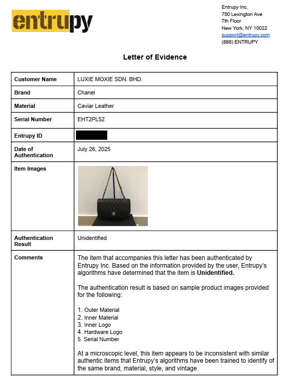 At Luxie Moxie, we provide Entrupy-powered authentication services in Malaysia: